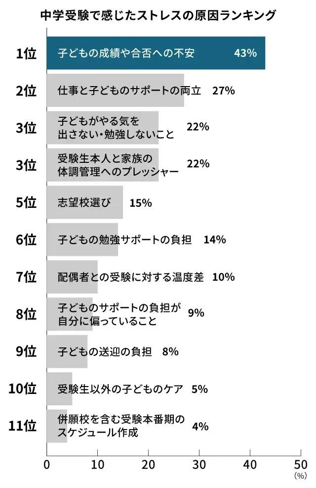 中学受験における親のストレス1位は「子どもの成績や合否への不安」