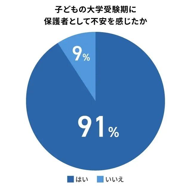 実際に、塾選ジャーナルが大学受験を経験した子どもをもつ保護者100名に行った調査では、9割が「不安を感じた」と回答。