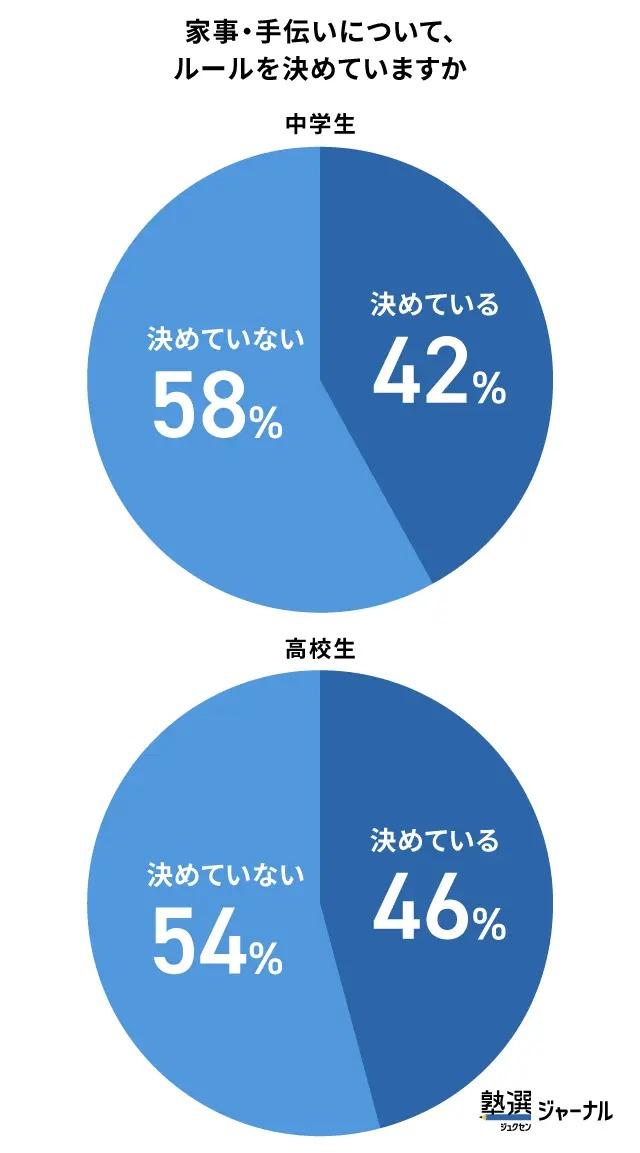 家事・手伝いのルール設定率は中学生42%、高校生46%
